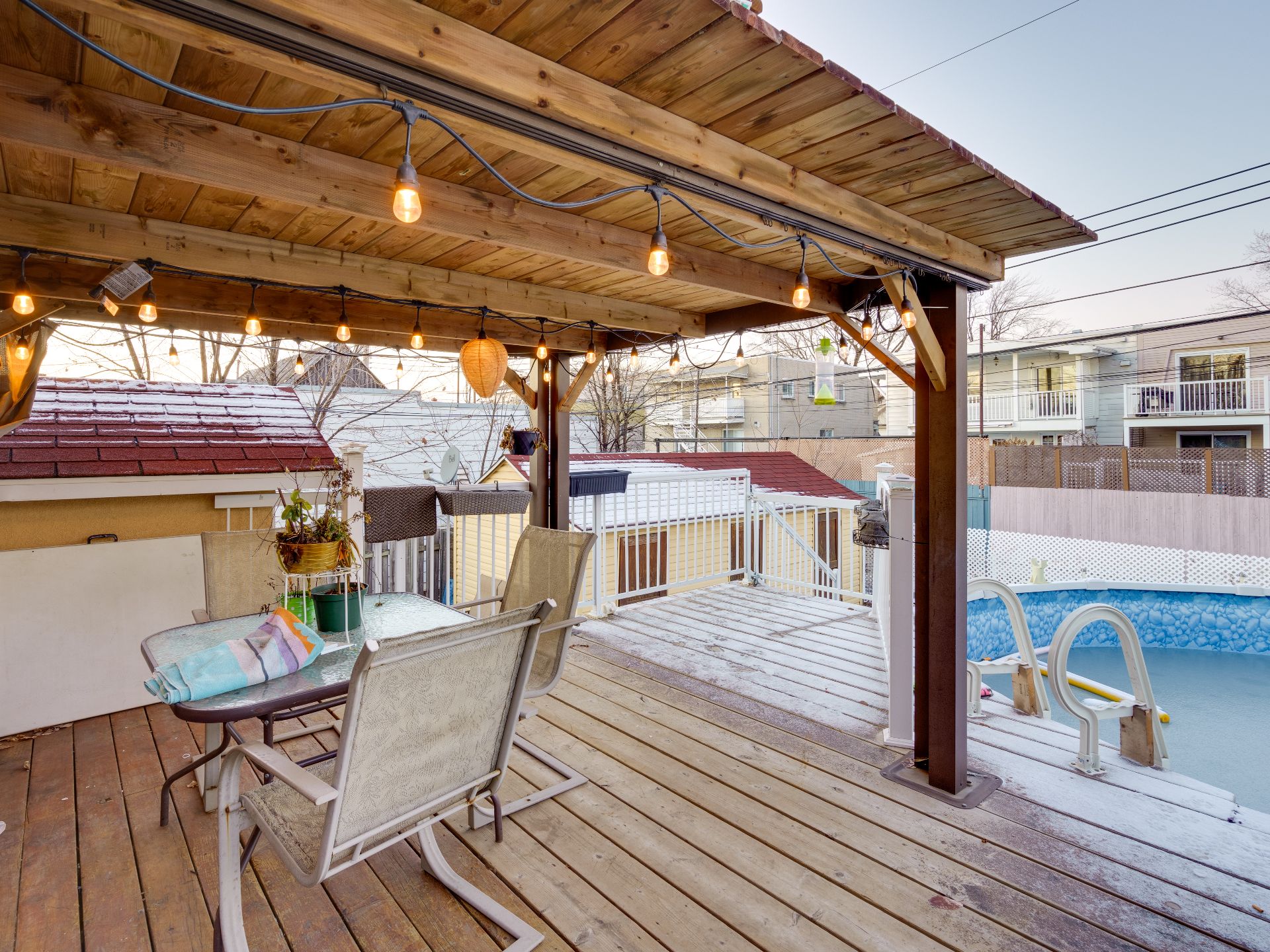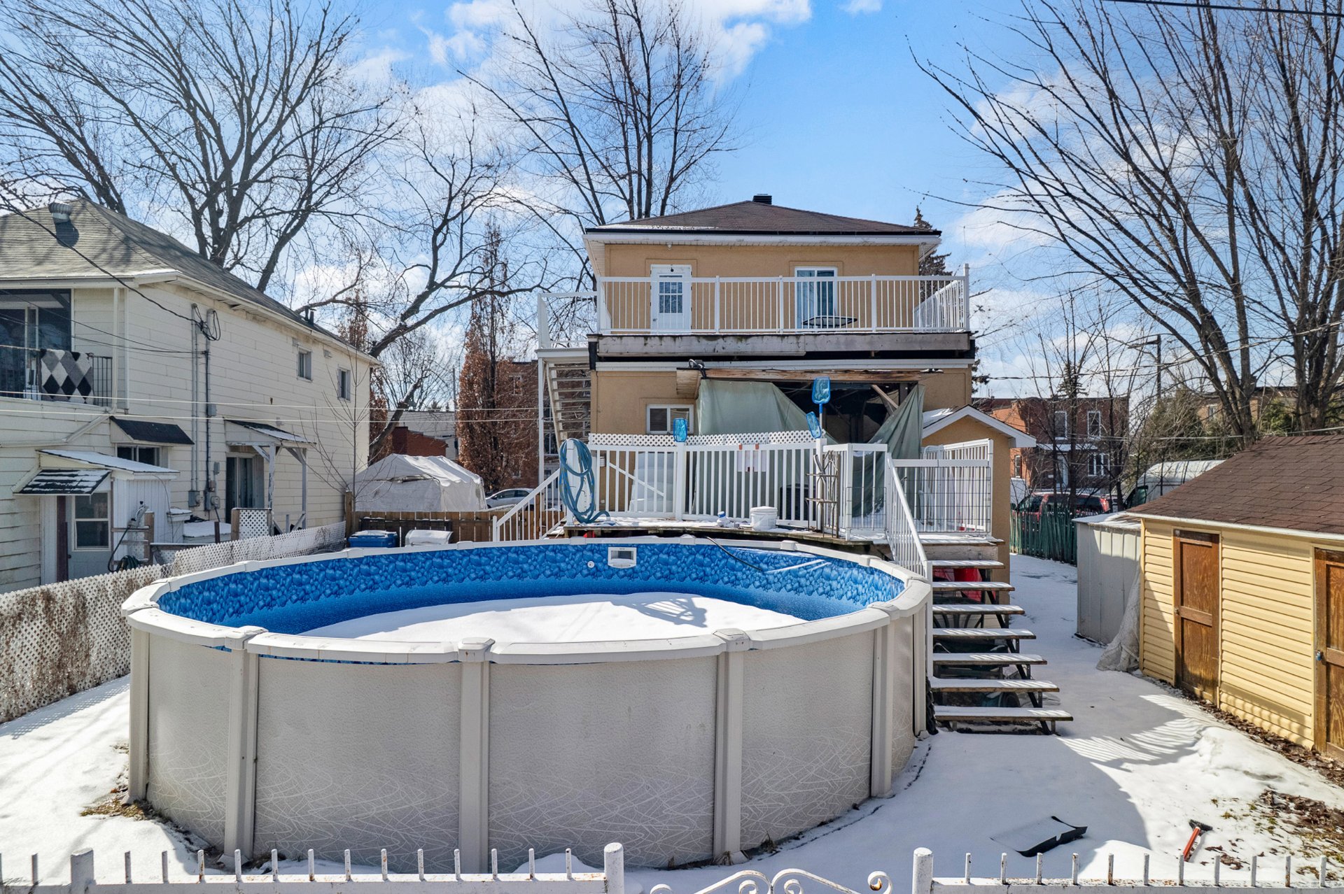 Le logement principal bénéficie d'un accès exclusif à la cour arrière, à la piscine hors terre ainsi qu'au balcon -- un avantage majeur pour un propriétaire occupant. L'extérieur offre également une grande cour, une très grande terrasse, des espaces de rangement pour les locataires et plusieurs stationnements, incluant de l'espace pour plusieurs véhicules ou un camion.