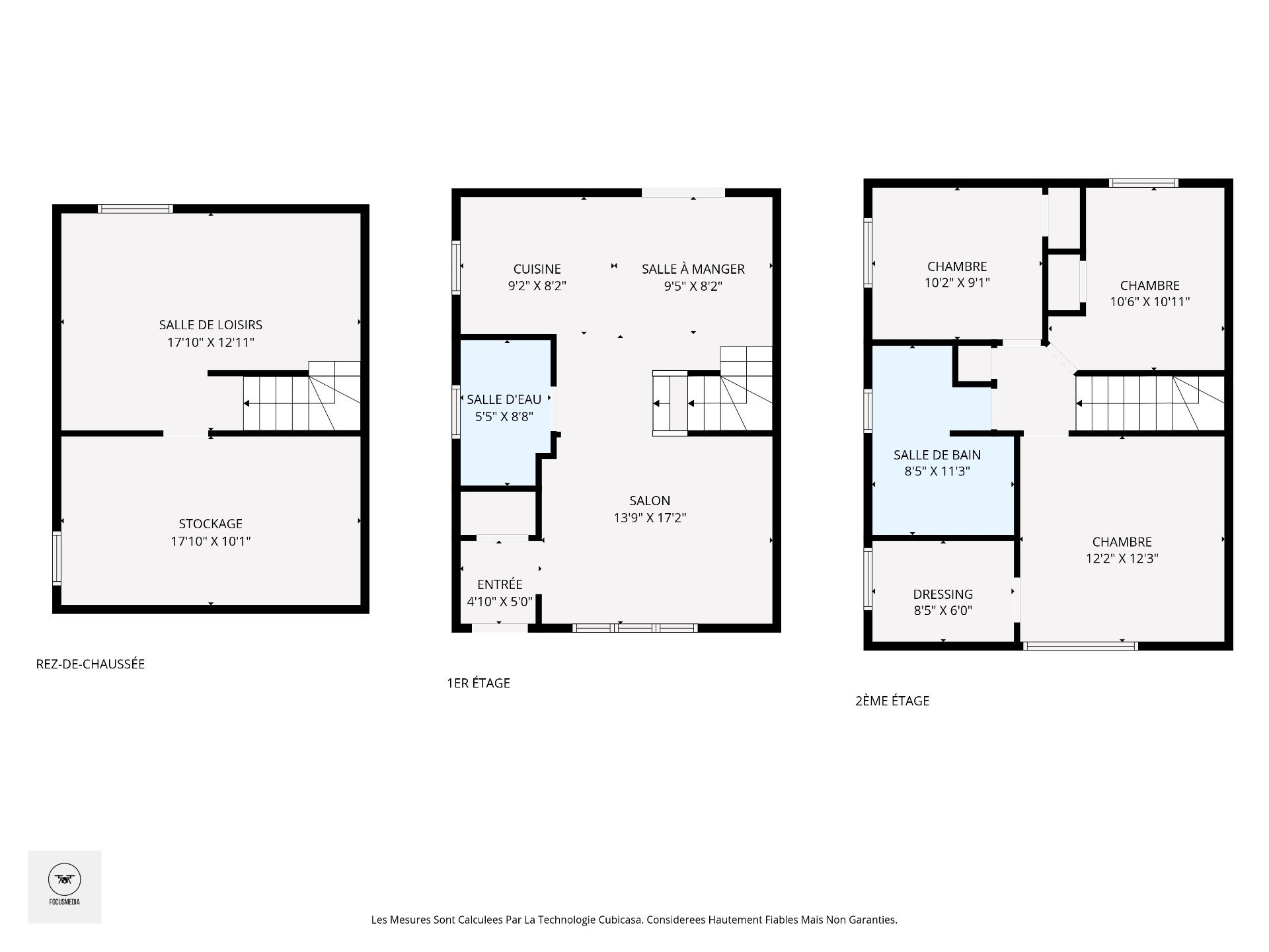| Salle de bains | 8.5 x 11.3 P | 2ième étage | Céramique |