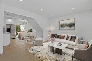 Le rez-de-chaussée à aire ouverte, baigné de lumière grâce à sa grande fenestration, propose un aménagement fluide idéal pour la vie quotidienne et pour recevoir. La salle à manger est munie d'une porte-patio menant à la cour arrière, créant une belle continuité intérieur-extérieur. La cuisine blanche au design intemporel offre beaucoup de rangement et un espace de travail pratique. Une salle d'eau avec installations laveuse et sécheuse complète le rez-de-chaussée.