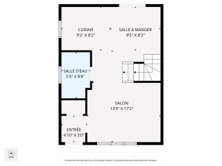 | Salle à manger | 9.5 x 8.2 P | Rez-de-chaussée | Bois |